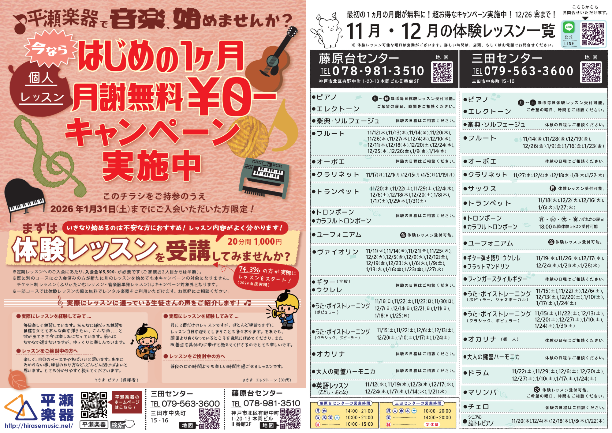 平瀬楽器 三田センター 079-563-3600